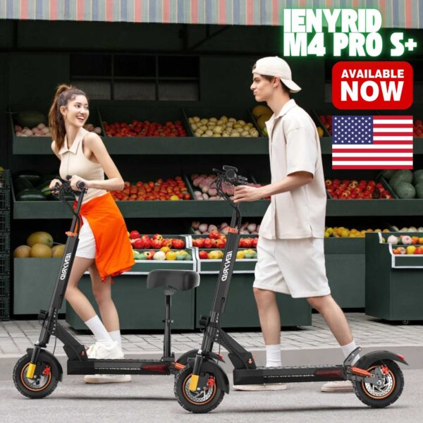 The iENYRID M4 Pro S+ is a high-performance electric scooter designed for adventure and daily commutes. Powered by an 800W motor and a 48V 12.5AH battery, it reaches speeds of up to 45 km/h with a range of 20-30 km. Featuring 10” off-road pneumatic tires, a mid-mounted color display, and a 150kg max load capacity, this scooter delivers power, durability, and style.